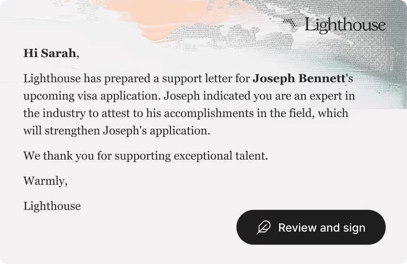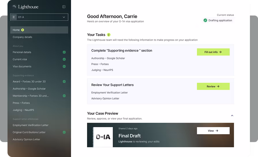 Lighthouse supports all employment-based visas, as well as select green card pathways designed to streamline the end-to-end immigration journey.
